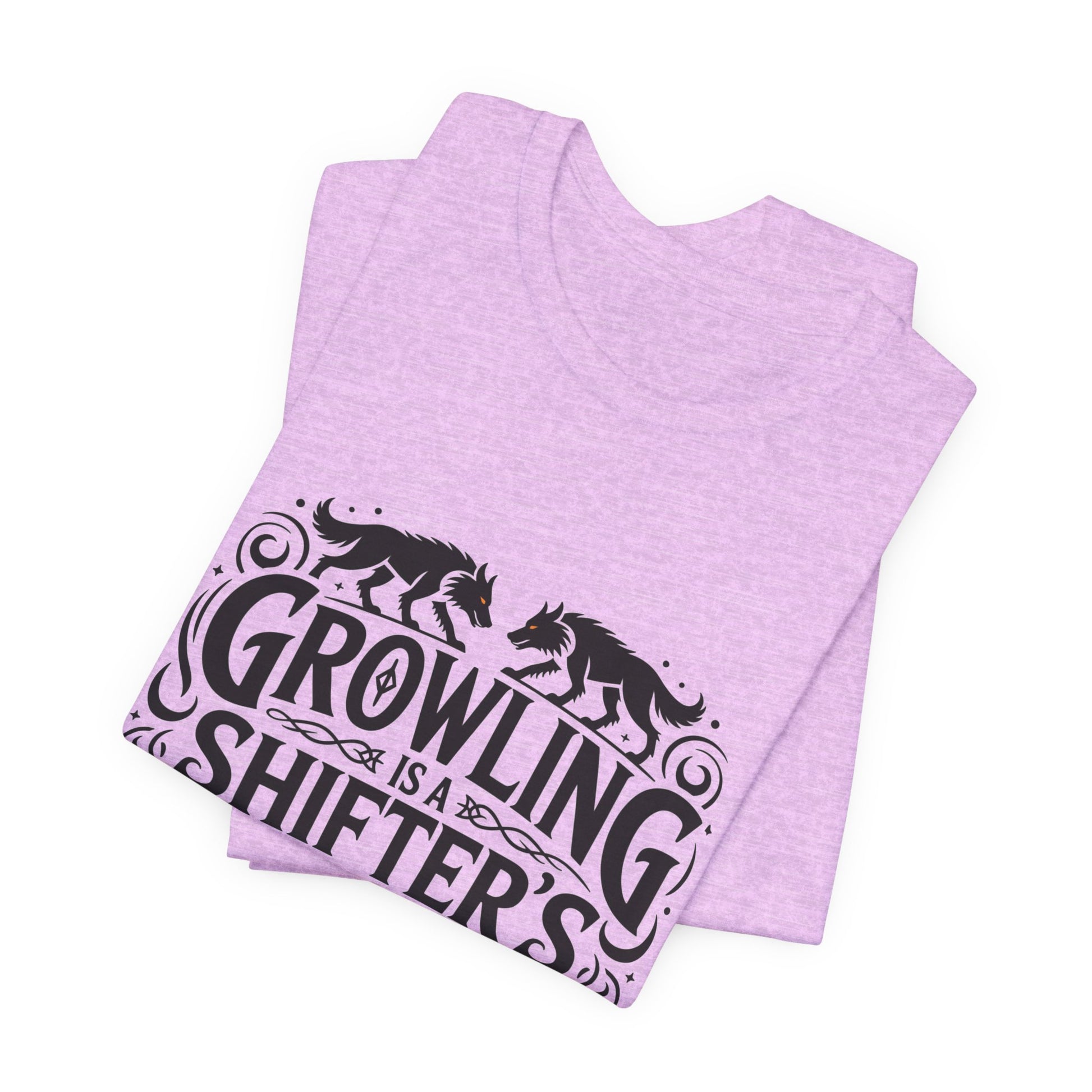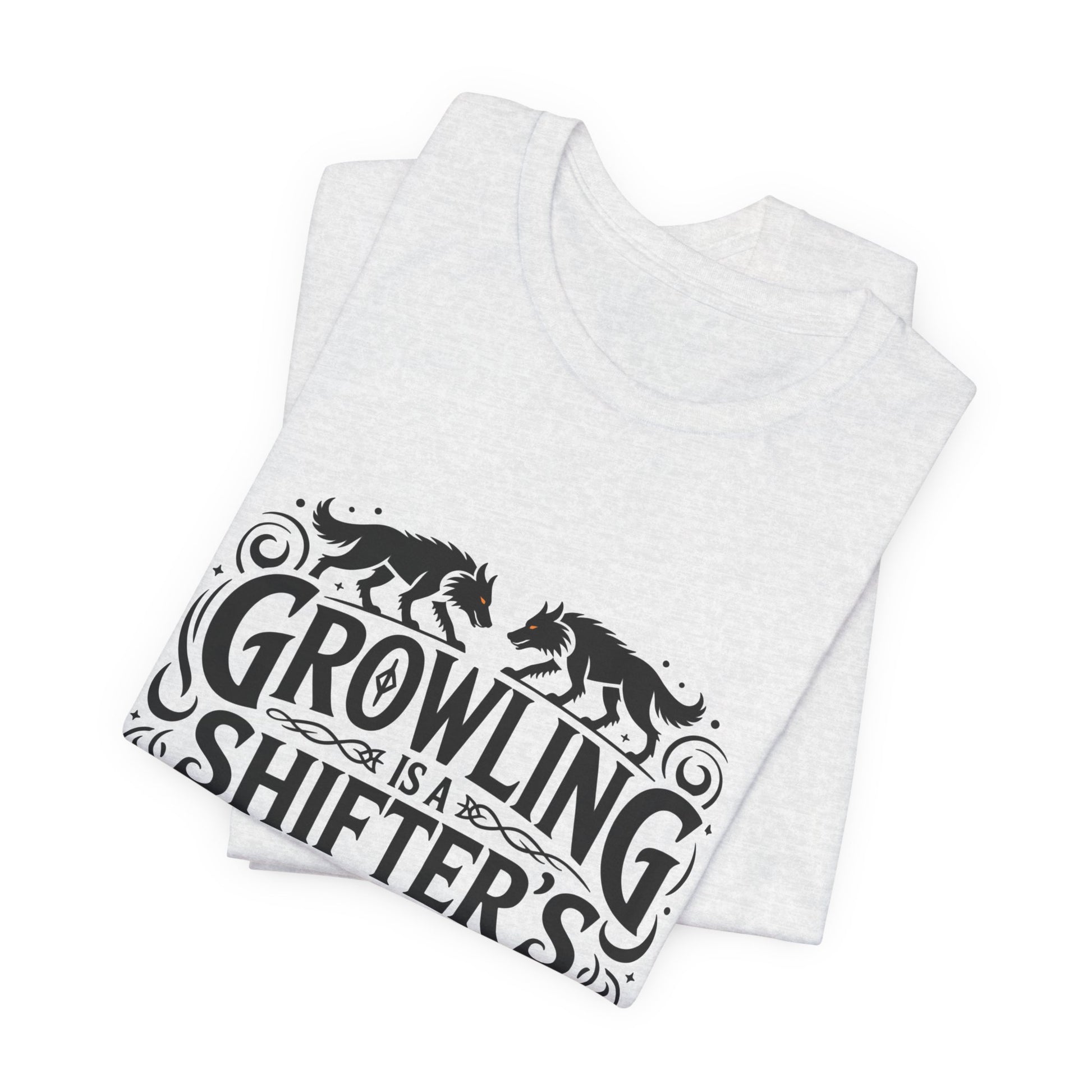 This lightweight jersey tee speaks to shapeshifter fans who wear their fandom proudly and playfully. The front features bold, vintage-style lettering reading “Growling is a Shifter’s Love Language,” framed by decorative swirls and prowling wolf silhouettes. Soft, breathable Airlume cotton makes the shirt comfortable for everyday adventures—from tabletop game nights to late-night reading sessions of urban fantasy. It layers easily under jackets or over long-sleeve shirts, and the understated monochrome print fits into wardrobes that favor subtle fandom cues rather than loud graphics. Wear it to conventions, writing meetups, or casual hangouts to signal your love of supernatural lore with a wink.